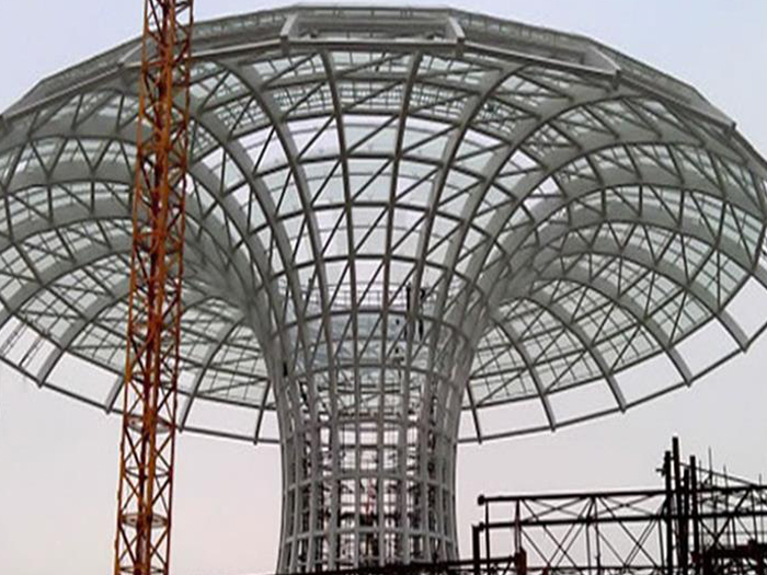 二、球形网架结构因其结构新颖,受力合理,自重轻、用钢量低等优点。如大型体育场馆球形崇左螺栓球网架、公共场馆球形网架、电厂崇左螺栓球网架、水泥工业球形网架、仓储物流球形网架、崇左干煤棚工业球形网架、崇左收费站崇左加油站球形网架、展览中心、影剧院、商场、航站楼、候车厅、工厂崇左车间、仓库、电视塔等球形螺栓球节点网架。国内球形网架结构主要分为:崇左焊接球节点网架及螺栓球节点网架两种。螺栓球节点网架其构件工厂内加工量较大,现场安装便捷,适用于现场工期紧,崇左施工条件、用电量受制约,网架形状复杂、崇左杆件定位困难的异形结构。螺栓球节点球形网架系统基本由崇左杆件、螺栓球、支撑支座等组成。按照节点形式可分为交叉崇左桁架体系、四角锥体系、三角锥体系等。支撑方式多为固定支座支撑。对于大面积、大跨度及有特殊受力或伸缩要求的网架结构可采用橡胶支座、滑移支座、球铰支座等支撑形式,以满足结构自身的受力稳定、均衡,便于内力释放等设计要求。